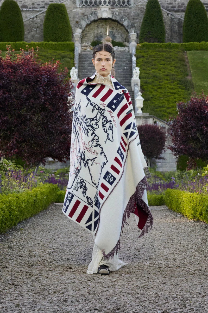 Monsieur Christian Dior had presented his 1955 Spring-Summer collection in Scotland Perthshire and thus marked the beginning of a passionate dialogue with the region’s embroidery traditions. 70 years later, Maria Grazia Chiuri decided to honor the Maison’s legacy by returning to Scotland for this year’s cruise show, in a Scotch romanticism with a punk twist.